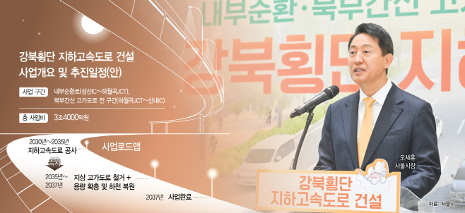 오세훈 서울시장은 이날 시청 대회의실에서 "과거 강북의 핵심 도로였던 내부순환로와 북부간선도로는 현재 환경 피해 개발 제한·교통 불편·안전 문제에 이르기까지 여러 문제점이 노정되기 시작했고, 강남·북 불균형을 초래하는 핵심 요인이자 도시 성장을 가로막는 제약이 됐다"고 진단했다.