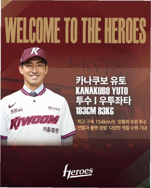 2026시즌 키움의 아시아쿼터로 영입된 日 투수 가나쿠보 유토. [사진=히어로즈 제공] |