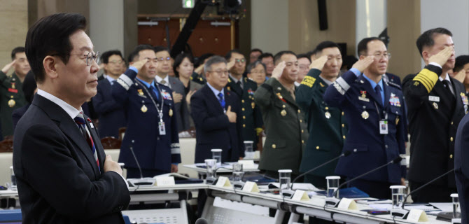 이재명 대통령이 18일 서울 용산구 국방부에서 열린 국방부·국가보훈부 업무보고에서 국민의례를 하고 있다. (사진=연합뉴스) |