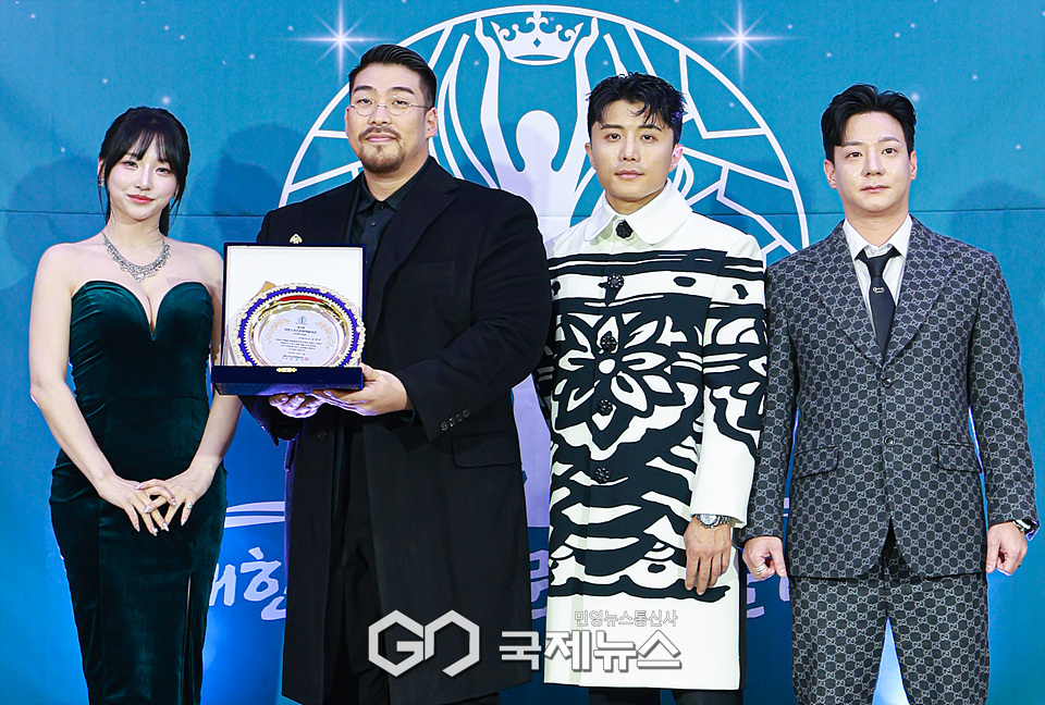 (서울=국제뉴스) 이대웅 기자 = '제3회 대한스포츠문화예술대상' 시상식이 12일 경기도 성남시 동서울컨벤션센터에서 열렸다. 이날 브랜드대상을 수상한 피트니스101 김현우 대표가 기념 포즈를 취하고 있다.
