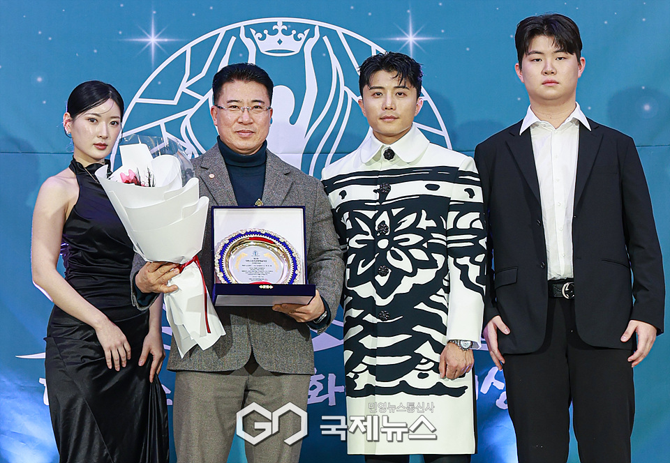 (서울=국제뉴스) 이대웅 기자 = '제3회 대한스포츠문화예술대상' 시상식이 12일 경기도 성남시 동서울컨벤션센터에서 열렸다. 이날 브랜드대상을 수상한 시드니휘트니스 박인성 대표가 기념 포즈를 취하고 있다.