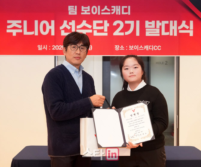 주니어 김민솔이 팀보이스캐디 주니어 선수단 2기 임명장을 받고 있다.