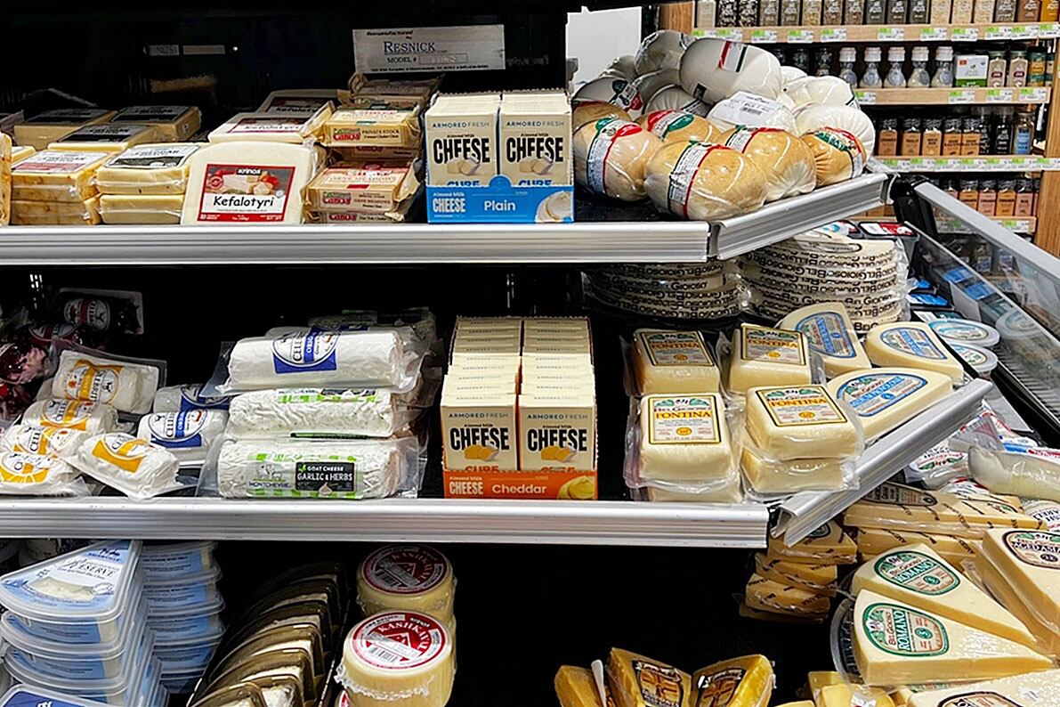 미국 뉴욕 지역 한 대형마트에 아머드 프레시 비건 큐브 치즈가 진열돼 있다. /아머드 프레시 제공 |