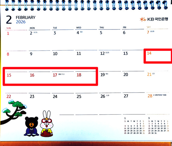 "은행달력 걸어두면 돈 들어온다" 2026년 공휴일 총정리 , 사진은 국민은행 달력 (사진=국제뉴스) |