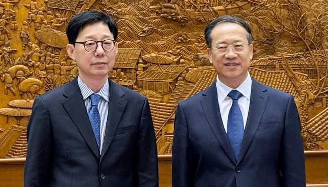 이 대통령은 이날 국방부 등의 업무 보고에서 “조만간 중국하고 다시 만나게 될 가능성이 있다”며 독립유공자 유해 발굴 문제를 “정상회담 전에 의제로 논의를 미리 해 달라”고 했다. 한·중 정상회담을 추진 중이란 사실을 시사한 것으로, 박 차관이 정상회담 조율을 위해 방중했다는 관측이 나온다.