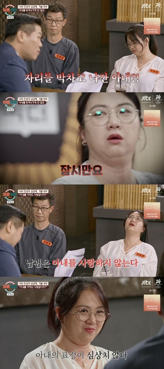 ‘가출 부부’ 남편은 아내에게 ‘바람피운 그 남자를 진심으로 사랑했냐’라고 물었고 아내는 질문을 듣자마자 자리를 박차고 나갔다. 남편은 아내와 상간남 사이에 아직도 사랑이 남아있는지가 궁금했던 것.