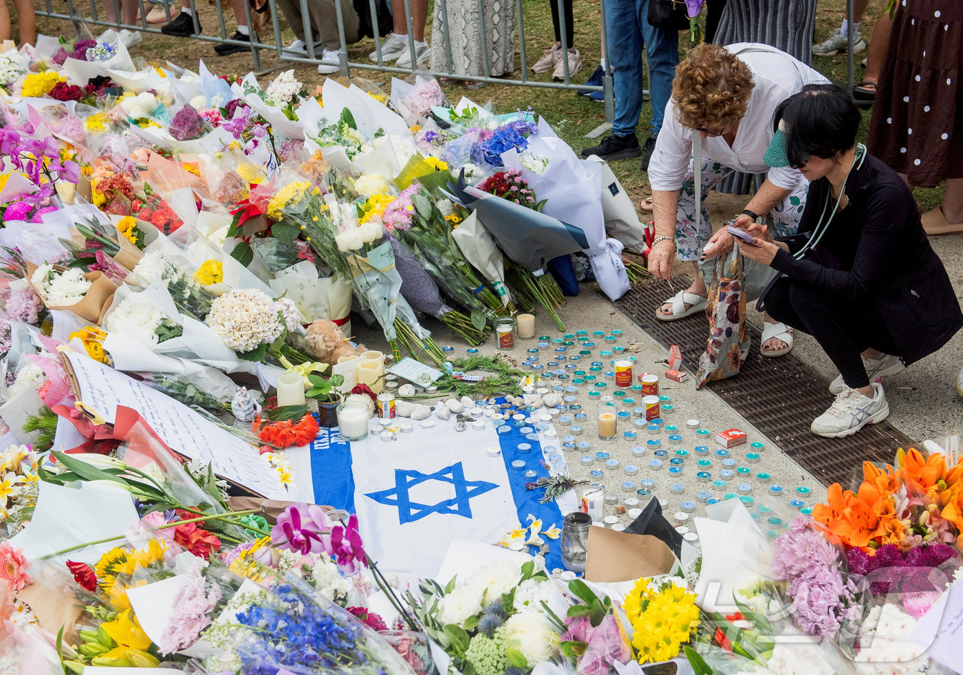 호주 시드니 본다이 비치 인근 하누카 축제 현장에서 발생한 총기난사 사건 이후 방문객들이 16일 현장에 헌화하며 추모하고 있다. 2025.12.16 ⓒ 로이터=뉴스1 ⓒ News1 강민경 기자 |