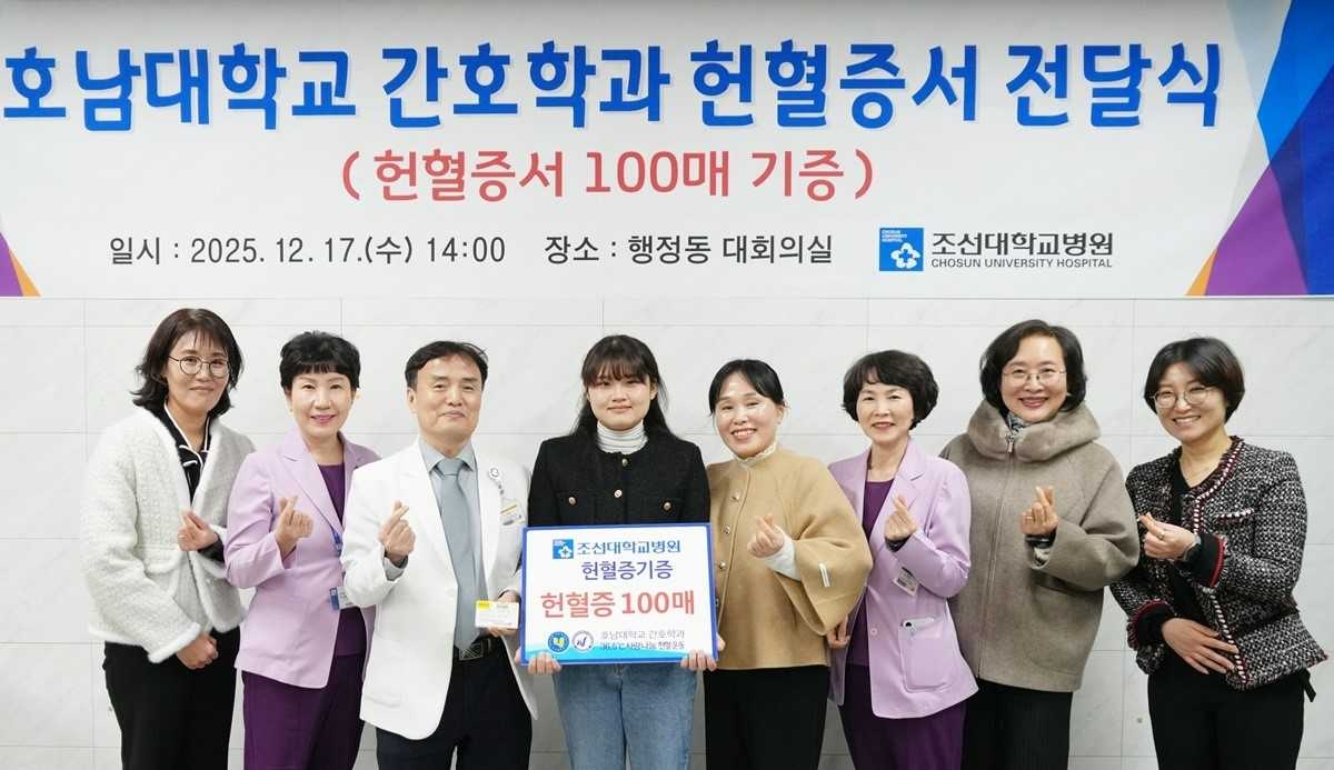 호남대 간호학과, 조선대병원에 헌혈증 100장 전달 |