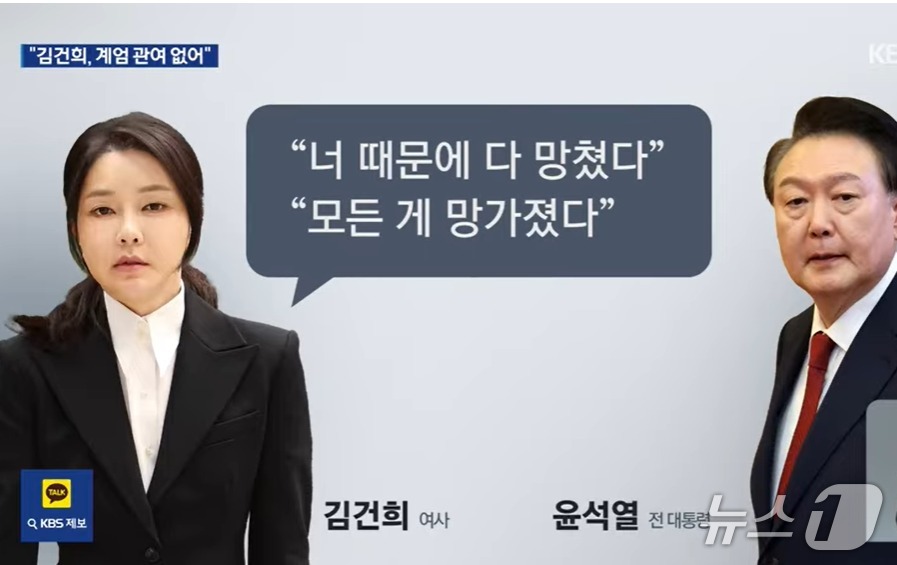 지난 15일 김건희특검은 최종수사 결과 브리핑에서 계엄 선포 뒤 김건희 여사가 윤석열 전 대통령에게 '너 때문에 다 망쳤다'며 화를 내며 부부싸움을 했다는 진술을 김 여사 측근으로부터 확보했다고 밝혔다. (KBS 갈무리) ⓒ 뉴스1 |