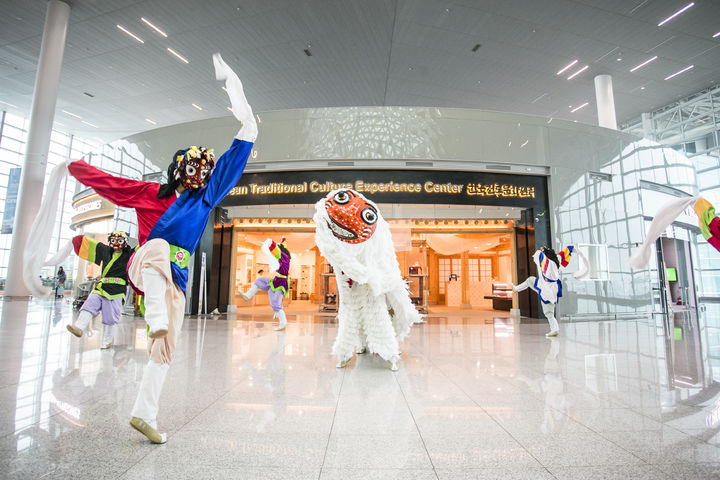 [서울=뉴시스]이수지 기자 = 인천공항에서 한국 전통문화인 탈춤 특별공연이 펼쳐진다.