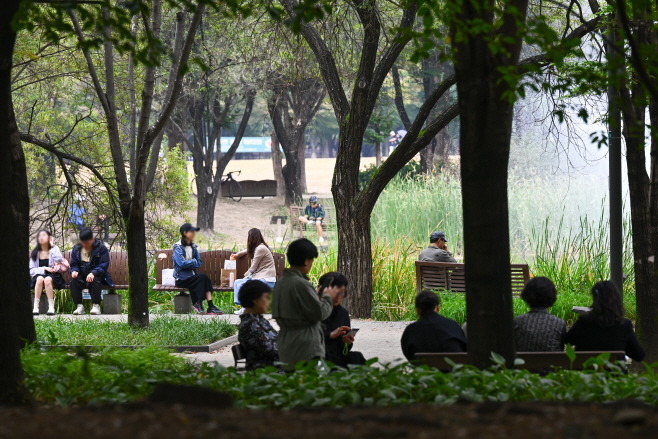 절기상 한로(寒露)를 하루 앞둔 7일 서울 성동구 서울숲을 찾은 시민들이 가을을 만끽하고 있다. /정재훈 기자 |