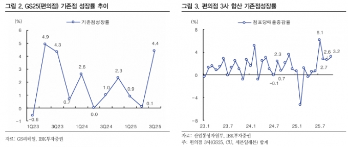 남성현 IBK투자증권 연구원은 "4분기 편의점 기존점 성장률은 2~3%에 달할 것으로 추정하고 있다"며 "다만 점포 증가 효과는 제한적일 것으로 보인다"고 말했다.