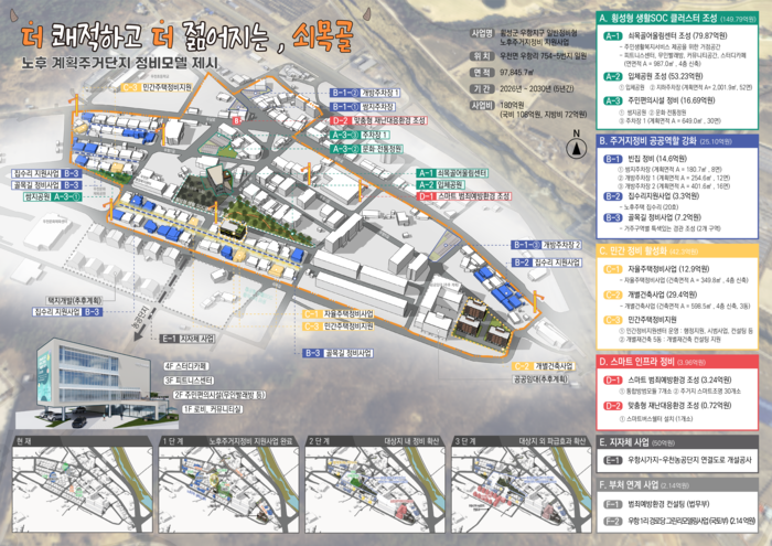 특히 주민생활복지서비스 제공을 위한 거점공간 조성, 자율주택정비사업과 민간정비 지원, 골목길 정비사업을 통해 주거환경을 개선하고, 지역 여건에 맞는 정주 기반을 마련한다는 방침이다.