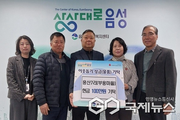 음성읍 용산7리 주민 대표(이장 윤병구)와 임원진들은 18일 음성읍 행정복지센터를 방문해 소외계층을 위해 사용해 달라며 주민들이 십시일반 모은 성금 100만원을 기탁했다.