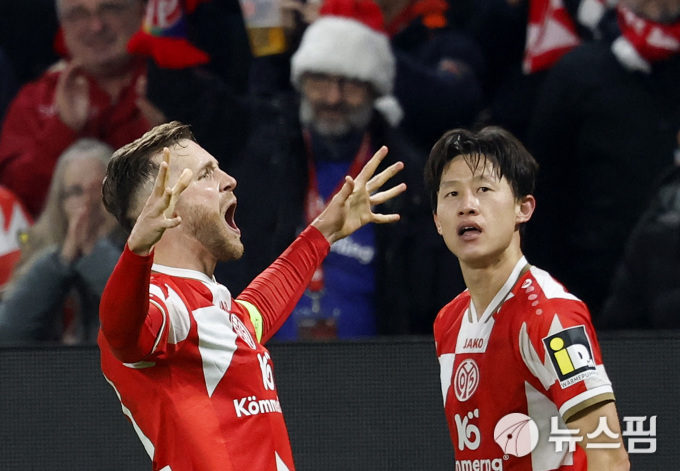 [마인츠 로이터=뉴스핌] UECL 삼순스포르와의 경기에서 결승골을 넣은 실반 비드머(왼쪽)와 어시스트를 기록한 이재성. 2025.12.19 wcn05002@newspim.com |
