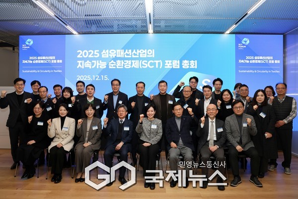 (서울=국제뉴스) 김서중 기자 = 한국섬유산업연합회(회장 최병오, 이하 섬산련)는 12월 15일(월) 서울 섬유센터에서 '2025섬유패션산업(의) 지속가능 순환경제(SCT)포럼 총회'를 개최하고 글로벌 규제 변화에 대응한 국내 섬유패션산업의 주요 추진 성과와 향후 방안을 공유했다.