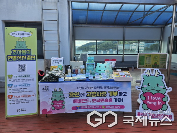 시는 고향사랑기부제에 참여한 기부자에게 에버랜드·한국민속촌 입장권, 조아용 굿즈, 백옥쌀, 한돈세트, 용인와이페이 등 80여 종의 답례품을 제공하고 있으며, 2026년부터는 뽕잎·블루베리·송화버섯 가공식품을 비롯해 여리향 쌀, 유정란, 전통식품 등 용인시 지정 특산품과 용인투어패스 등 지역 관광·체험 상품을 포함한 16종의 답례품을 추가로 선보일 예정이다.