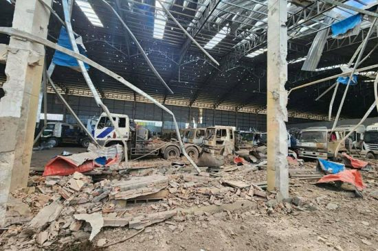 태국군이 캄보디아 북서부 반띠어이미언쩨이주 포이펫 지역을 폭격해 창고 시설이 파괴된 모습. AP연합뉴스 |