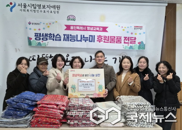 (용인=국제뉴스) 강정훈 기자 = 용인시(시장 이상일)는 18일 평생학습관·기흥평생학습관 '평생학습 재능나누미' 수강생들이 처인구 이동읍에 있는 서울시립영보자애원에 직접 만든 턱받이, 무릎담요 등을 기탁했다고 19일 밝혔다.