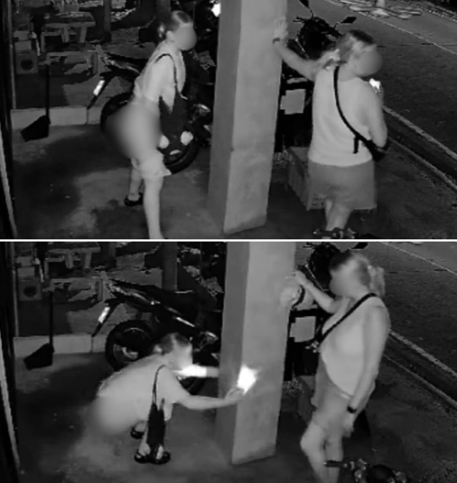 태국 한 식당 앞에서 바지를 내린 뒤 대놓고 노상 방뇨하는 여성 모습이 담긴 CCTV 영상이 공개됐다.