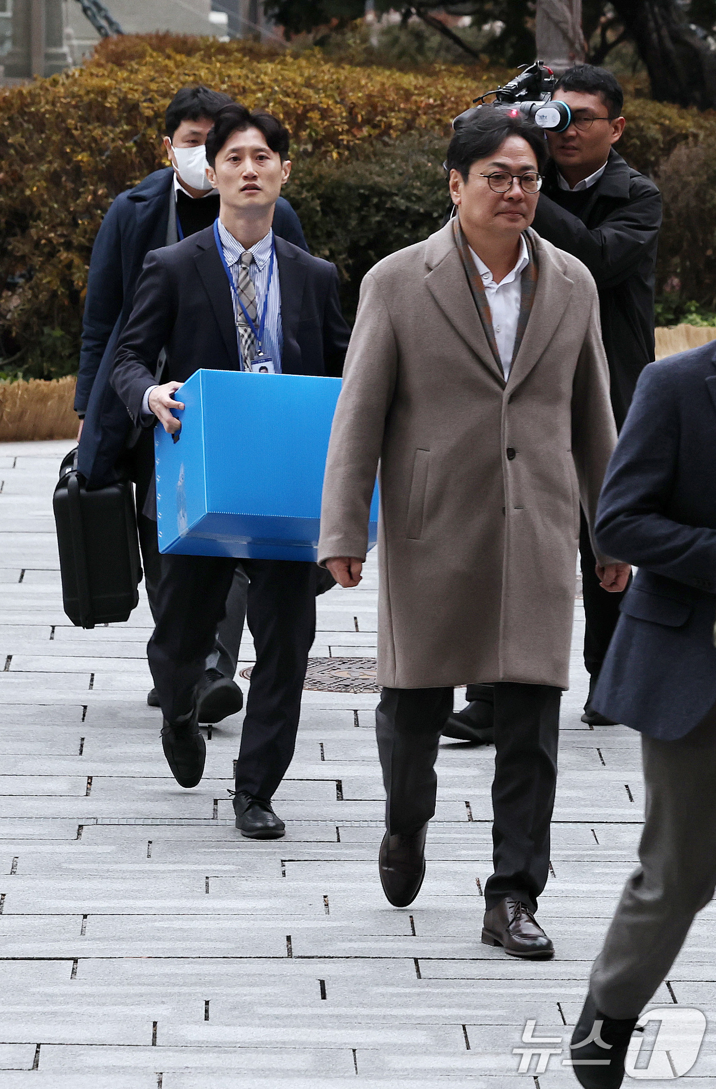 (서울=뉴스1) 구윤성 기자 = '관봉권 띠지 폐기 의혹'을 수사중인 안권섭 상설특별검사팀이 19일 오전 수색·검증 영장을 집행하기 위해 서울 중구 한국은행 발권국으로 향하고 있다. 2025.12.19/뉴스1