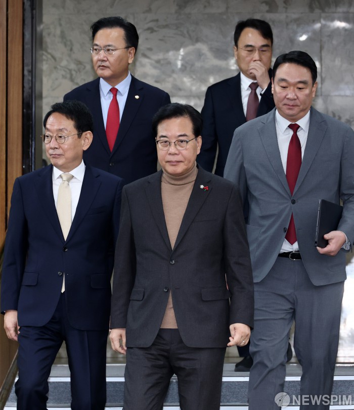 [서울=뉴스핌] 최지환 기자 = 송언석 국민의힘 원내대표가 19일 오전 서울 여의도 국회에서 열린 원내대책회의에 입장하고 있다. 2025.12.19 choipix16@newspim.com |