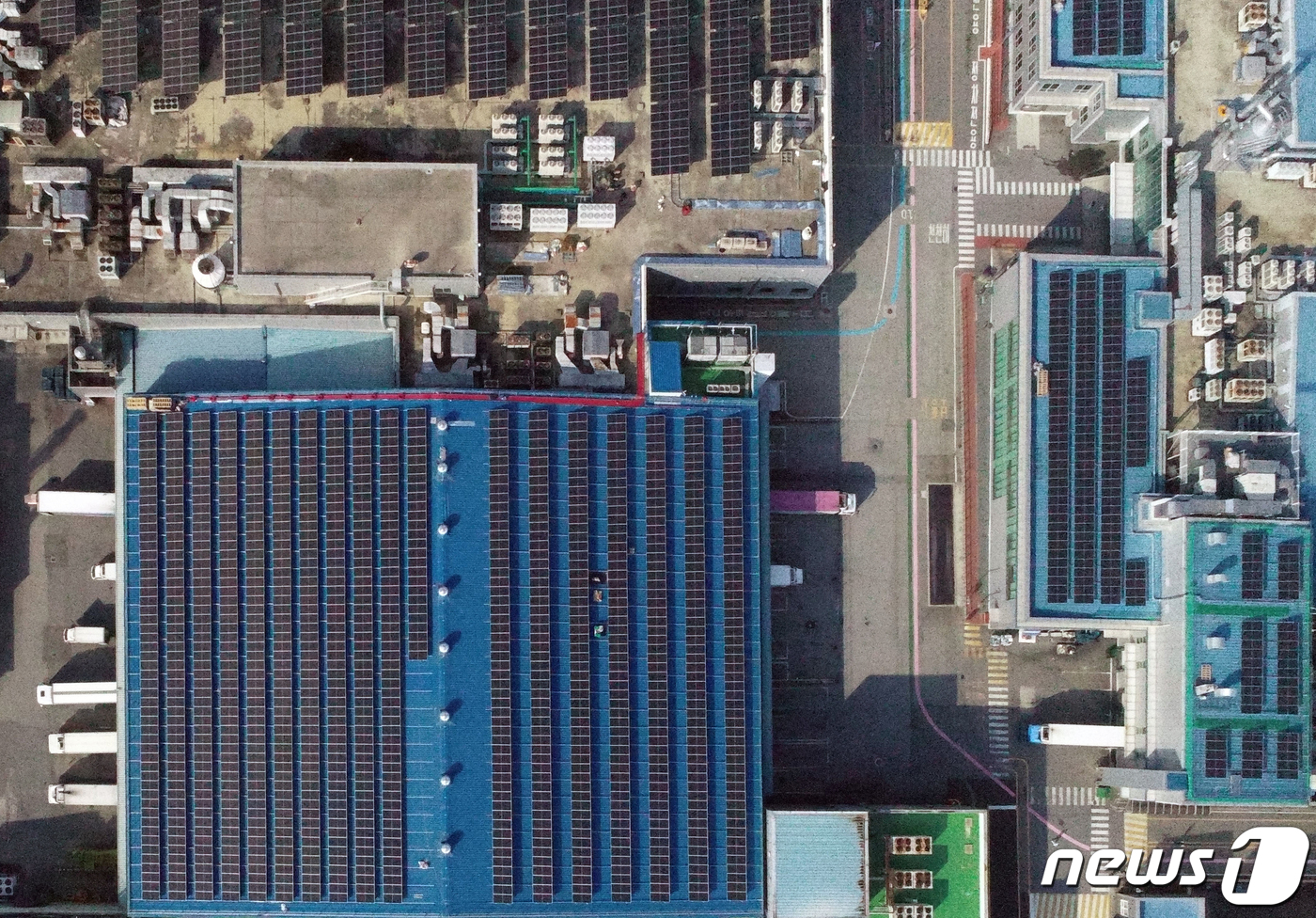 HD현대에너지솔루션이 CJ제일제당 진천공장 지붕에 설치한 태양광 발전소 모습(HD현대 제공) ⓒ News1 최동현 기자 |