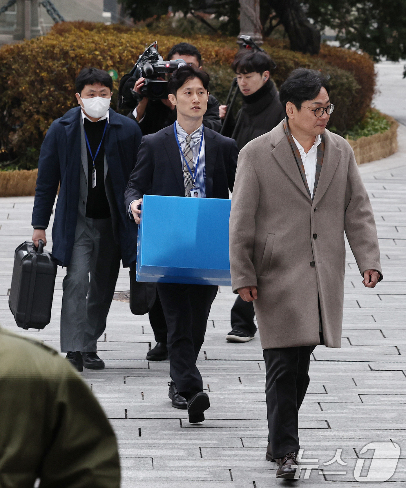 (서울=뉴스1) 구윤성 기자 = '관봉권 띠지 폐기 의혹'을 수사중인 안권섭 상설특별검사팀이 19일 오전 수색·검증 영장을 집행하기 위해 서울 중구 한국은행 발권국으로 향하고 있다. 2025.12.19/뉴스1