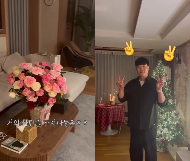 이어 집으로 들어가자 배성재가 준비해놓은 커다란 장미 꽃다발들이 그를 반겼다.