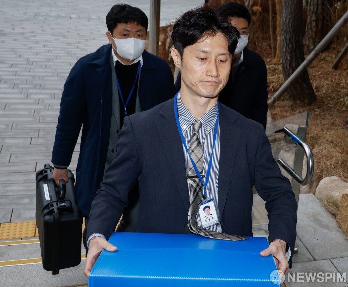 [서울=뉴스핌] 류기찬 기자 = '관봉권 띠지 폐기 의혹'을 수사하는 안권섭 상설 특별검사팀이 19일 오전 서울 중구 한국은행에 대한 수색영장을 집행하기 위해 이동하고 있다. 2025.12.19 ryuchan0925@newspim.com