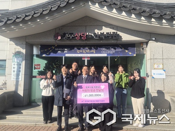 (청주=국제뉴스) 이재기 기자 = 한국농어촌공사 충북지역본부(본부장 최현수)는 연말을 맞아 지역사회의 고령 어르신과 소외된 이웃 등에게 따뜻한 마음을 전달하고자 상당노인복지관(관장 장선애)을 방문해 이웃돕기 성금 100만원을 전달했다.