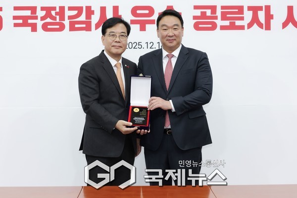 (서울=국제뉴스) 고정화 기자 = 국민의힘 정희용 국회의원(경북 고령·성주·칠곡, 국회 농림축산식품해양수산위원회)이 18일 국회 본관에서 열린 '2025 국정감사 공로·우수 국회의원 포상식'에서 공로상을 수상했다.