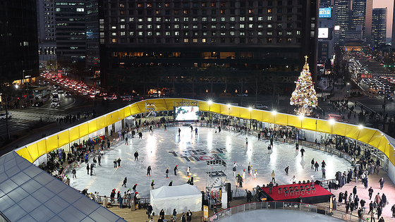 ■ 오후 5:30 서울광장 스케이트장 개장, 입장료는 1000원 서울광장 스케이트장이 19일 개장했다. 내년 2월 8일까지 총 52일간 운영에 들어간다. 올해 서울광장 스케이트장은 ‘윈터링’(Winter Ring)을 주제로 새롭게 단장해 밝고 경쾌한 축제 분위기를 강화했다. 운영시간은 일요일부터 금요일까지는 오전 10시부터 오후 9시30분까지, 토요일과 공휴일은 오전 10시부터 오후 11시까지다. 서울시는 시민과 관광객 누구나 부담 없이 스케이트장을 즐길 수 있도록 2004년 첫 개장부터 19년째(집회, 코로나19 팬데믹으로 쉬었던 3년 제외) 입장료를 1000원으로 유지하고 있다. 헬멧과 무릎보호대 등 안전용품은 무료 대여 가능하고, 필요시 개인 방한용품과 물품 보관함은 유료로 이용할 수 있다.