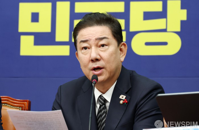 [서울=뉴스핌] 정일구 기자 = 김병기 더불어민주당 원내대표가 19일 오전 서울 여의도 국회에서 열린 최고위원회의에서 모두발언을 하고 있다. 2025.12.19 mironj19@newspim.com