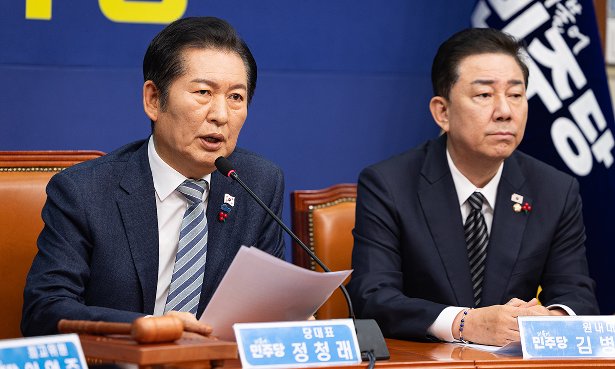 정청래 더불어민주당 대표가 19일 서울 여의도 국회에서 열린 최고위원회의에서 모두 발언을 하고 있다. 뉴스1 |