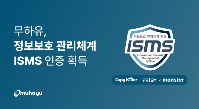 자연어 이해 기반 AI 기업 무하유(대표 신동호)는 한국인터넷진흥원(KISA)이 주관하는 정보보호 관리체계(ISMS) 인증을 획득했다고 19일 밝혔다.