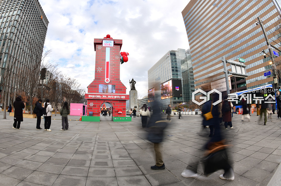 (서울=국제뉴스) 안희영 기자 = 사회복지공동모금회 사랑의 열매의 사랑의 온도탑이 19일께 53.8도를 기록했다. 시민과 직장인들이 금일 정오께 광화문광장 사랑의 온도탑 앞에서 기부의 발길을 잇고 있다. 19일 사회복지공동모금회의 전국적인 모금액은 2,419.7억 원으로 집계되었다.
