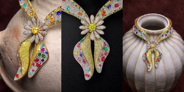 ‘The Bandana Royale’은 지드래곤의 2025 Übermensch 월드 투어 한국 파이널 앙코르 콘서트에서 최초로 공개되며 강렬한 존재감을 드러냈다. 총 209.71캐럿의 젬스톤이 세팅된 이 주얼드 반다나 칼라는 지드래곤(G-DRAGON)의 시그니처 아이템인 반다나를 조형적으로 재해석한 작품으로 익숙한 실루엣에 하이 주얼리 특유의 혁신성과 예술성을 더한 스테이트먼트 피스로 완성됐다.