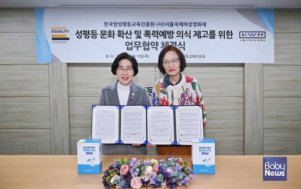 성평등가족부 산하 한국양성평등교육진흥원(원장 김삼화)은 (사)서울국제여성영화제(이사장 변재란)와 성평등 문화 및 폭력예방 의식 확산을 위한 상호 업무협약(MOU)을 체결했다고 19일 밝혔다.