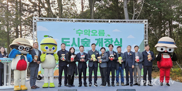 [대전=팍스경제TV] 박은식 산림청 차장이 19일 제주 서귀포시 수악오름에서 열린 '수악오름 국유지 도시숲' 개장식에 참석해 도시숲 조성 경과를 보고를 받고 관계자들을 격려했다. 이날 개장한 수악오름 도시숲은 8㏊ 규모의 국유지에 조성된 숲으로, 기후위기 대응과 지역주민·관광객을 위한 휴식·치유의 공간으로 활용될 예정이다. 박 차장은 기념사를 통해 "산림청은 지역 특성을 살린 도시숲을 더욱 확대해 국민 누구나 집 가까이에서 숲의 혜택을 누릴 수 있도록 최선을 다하겠다."고 밝혔다. 사진은 박은식 산림청 차장(왼쪽 여섯 번째)이 제주시 남원읍 하례리에서 열린 '제주 수악오름 국유지 도시숲 개장식'에서 지역주민과 기념촬영을 하고 있다. [사진제공=산림청]