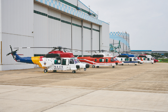 사진 앞쪽부터 해경, 산림, 경찰, 소방 헬기. [사진=한국항공우주산업] |