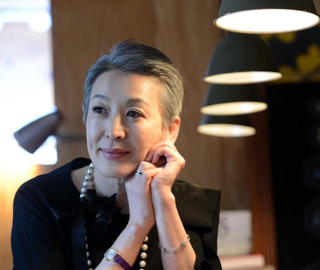 2012년 4월 영화 '봄, 눈'의 개봉을 앞두고 한국일보와 인터뷰 중이던 배우 윤석화. 한국일보 자료사진 |