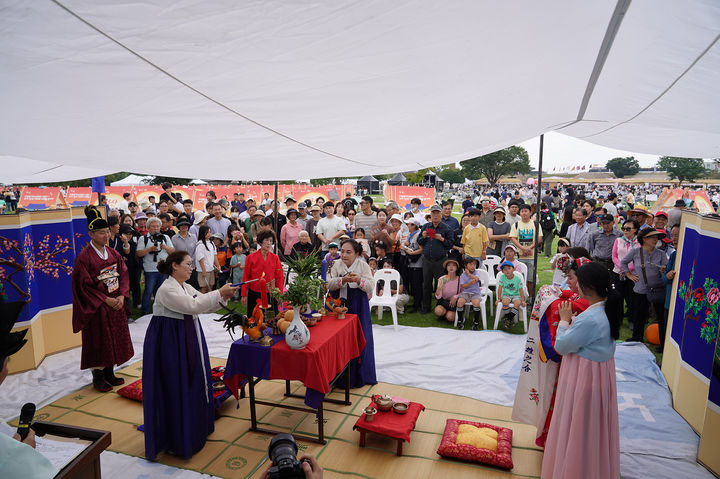 [서산=뉴시스] 지난 9월27일 서산해미읍성축제장에서 전통 혼례가 재현되고 있다. (사진=뉴시스 DB). photo@newsis.com *재판매 및 DB 금지 |