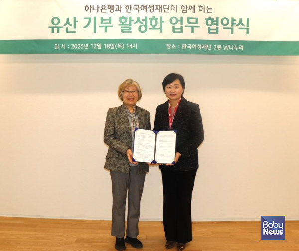 한국여성재단(이사장 장필화)과 하나은행(은행장 이호성 )은 지난 18일, 유언대용신탁을 통해 기부문화 정착 및 저변 확산을 위한 업무 협약식을 진행하였다고 19일 전했다.