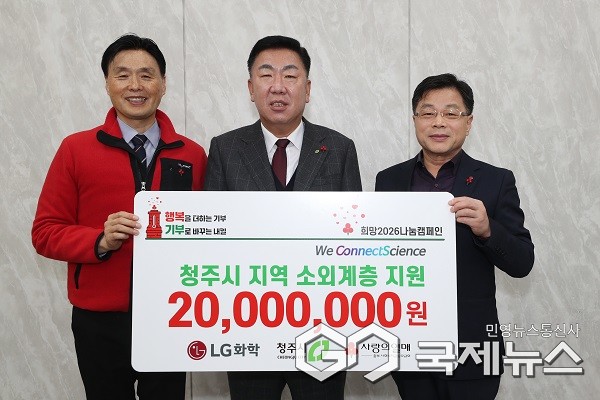 (청주=국제뉴스) 이재기 기자 = LG화학 청주공장(주재임원 최종완 상무)은 19일 청주시청을 방문해 연말을 맞아 지역 소외계층 지원을 위한 후원 성금 2000만원을 기탁했다.