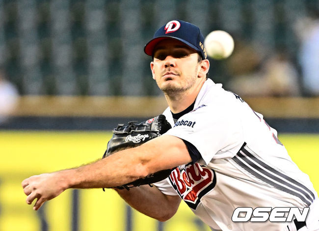 [OSEN=잠실, 지형준 기자] 18일 오후 서울 잠실구장에서 ‘2025 신한 SOL Bank KBO리그’ 두산 베어스와 키움 히어로즈의 경기가 열렸다.두산은 잭로그, 키움은 하영민이 선발로 나섰다.1회 두산 잭로그가 역투하고 있다. 2025.09.18 /jpnews@osen.co.kr |