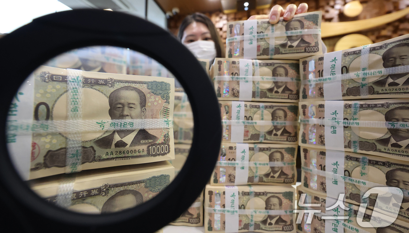 22일 오전 서울 중구 하나은행 위변조대응센터에서 직원이 엔화 지폐를 살펴보고 있다. 2025.4.22/뉴스1 ⓒ News1 장수영 기자 |