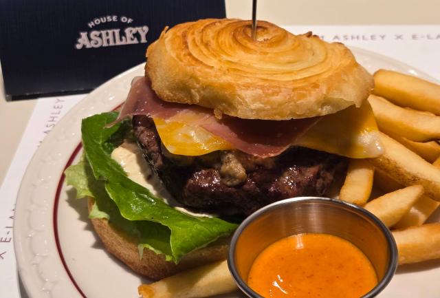 오세득 셰프와 애슐리퀸즈가 협업해 개발한 시그니처 메뉴 '한우 비프웰링턴 버거' [사진=박승호 기자] |
