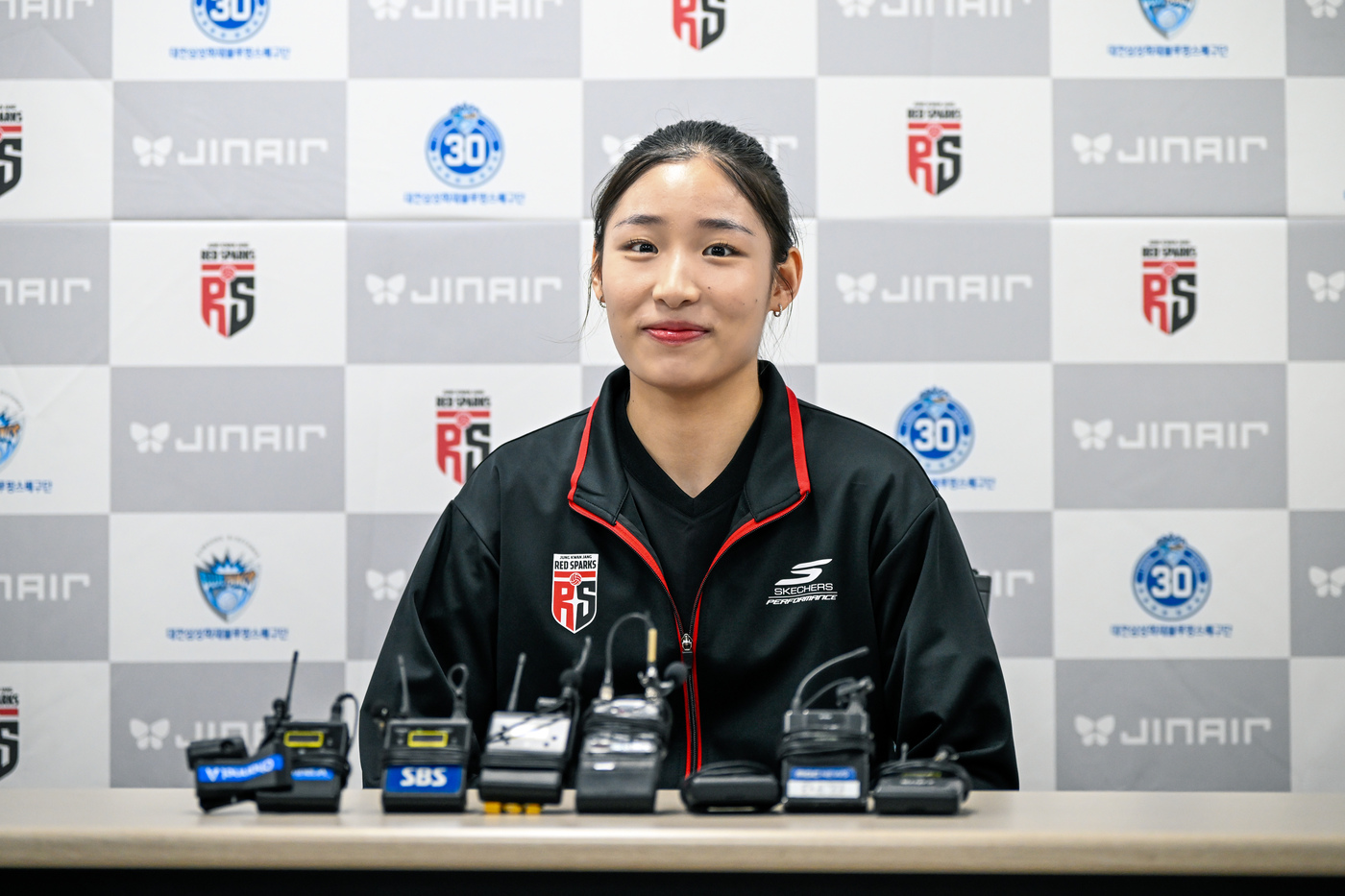 이어 단점으로 꼽히는 수비에 대해서는 "정관장에서 코치님들과 함께 열심히 수비 연습을 하고 있고, 리시브도 중요하게 생각하고 있다. 잘 준비하겠다"고 답했다.
