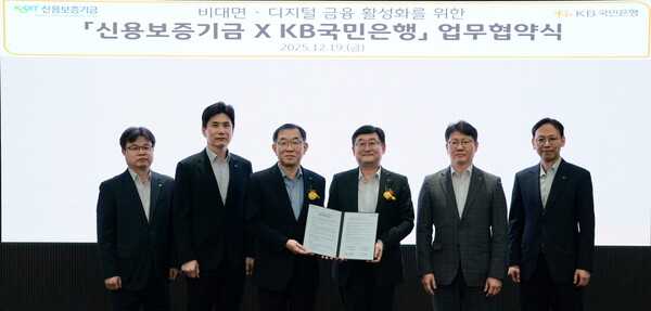 KB국민은행은 19일 신용보증기금과 함께 기업고객을 대상으로 원활한 금융지원을 돕기 위한 '기업 비대면·디지털 금융 활성화 업무협약'을 체결했다.